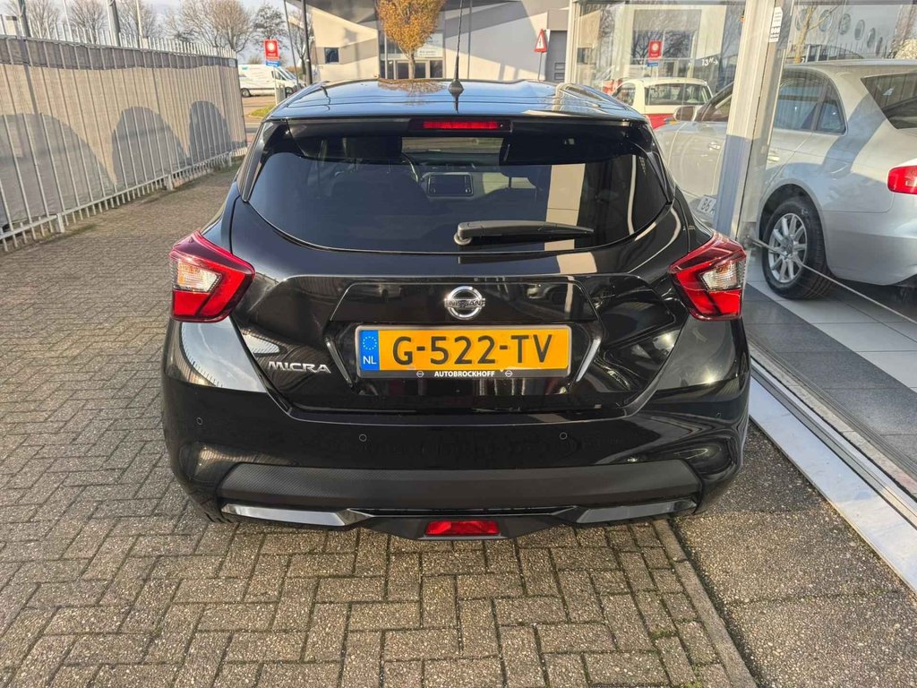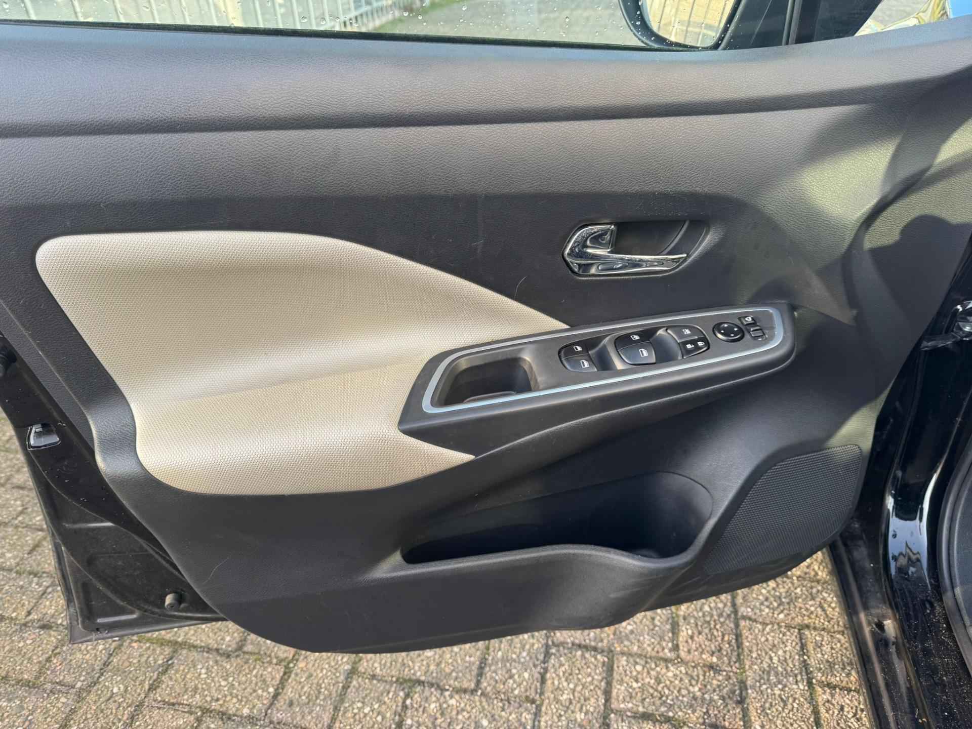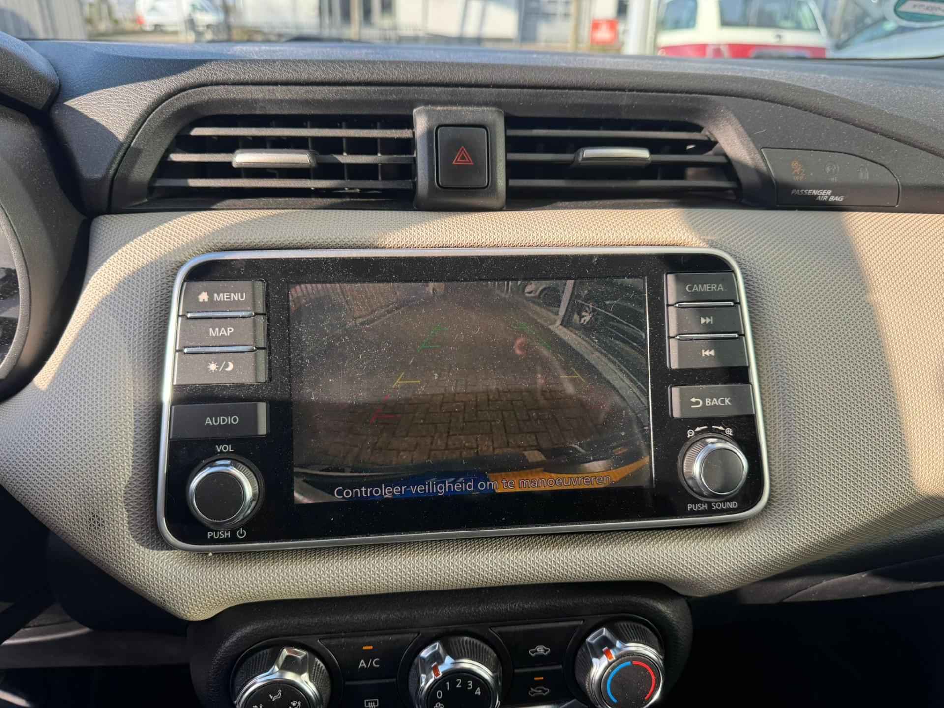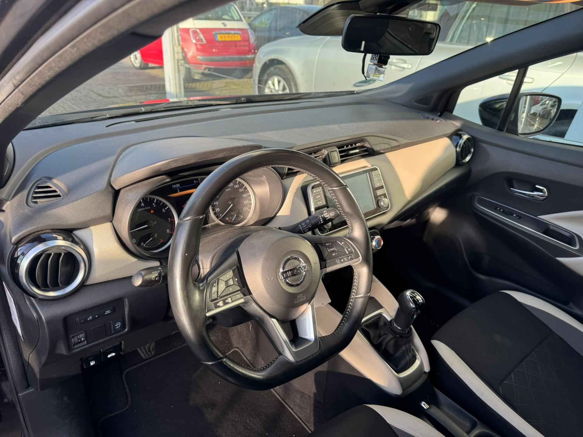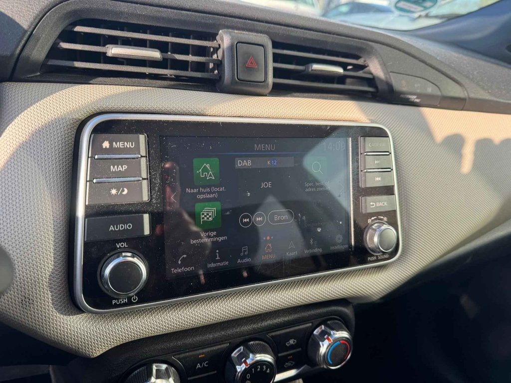 Het audiosysteem (met dab-ontvangst!) bedient u met knoppen op het stuur. Deze Nissan Micra is voorzien van sensoren aan de achterzijde om een achteropkomend verkeer waarschuwing te geven als de afstand tussen u en een achterligger te klein is. Met de aanwezige parkeersensoren weet u altijd zeker of het past. Cruise control is aanwezig; prettig voor de lange einden. Het maakt niet uit hoe warm het buiten is, want met de airconditioning bepaalt u zelf de binnentemperatuur. Met lederen stuur, centrale deurvergrendeling met afstandsbediening en boordcomputer is deze Nissan helemaal compleet.