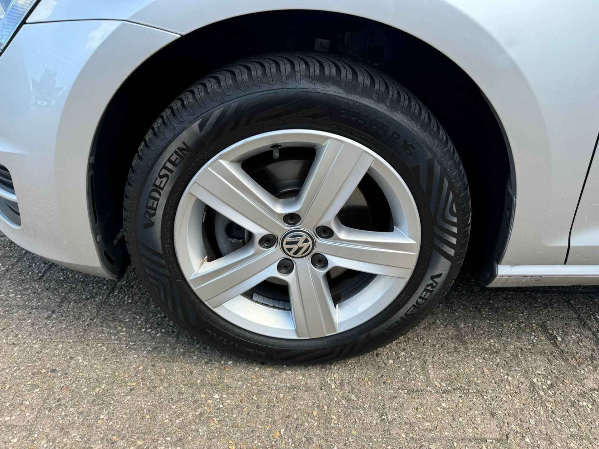 De achteruitrijcamera levert eersteklas parkeerservice. U weet precies hoeveel ruimte u nog heeft, in beeld en geluid. Met spraakbediening of de knoppen op het stuur regelt u het audio-installatiesysteem en het full map navigatiesysteem, terwijl u uw blik op de weg gericht houdt. De audio-installatie biedt daarbij glasheldere ontvangst dankzij DAB-ontvangst. Natuurlijk is er ook automatische airconditioning aanwezig. Om de veiligheid onderweg te verhogen, heeft deze Volkswagen zowel een automatisch inschakelbare verlichting als een regensensor aan boord, zodat hij zelf de verlichting en de ruitenwissers kan inschakelen. Nooit meer last van een slapende rechtervoet dankzij de uitgekiende cruise control! Ook automatisch dimmende binnenspiegel, lederen stuur en versnellingspook, centrale deurvergrendeling met afstandsbediening en boordcomputer horen tot de voorzieningen op deze auto.